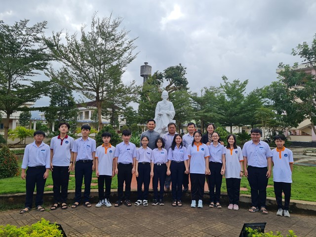 BTV Thị đoàn Hoài Nhơn chụp hình lưu niệm với lãnh đạo trường và học sinh đạt giải HSG cấp Quốc gia năm 2024