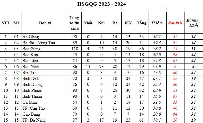 Kết quả HSG cấp Quốc gia năm 2024. Giải nhất môn Toán, tham gia Chọn đội tuyển dự thi Quốc tế!