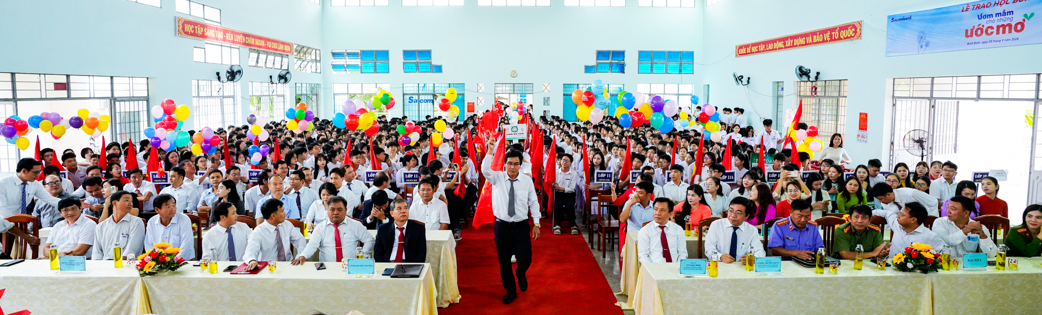 Lễ khai giảng năm học 2024-2025 đã diễn ra ngắn gọn, trọng thể và đầy khí thế. Tiếng trống khai trường đã được gióng lên và âm vang còn lưu trong lòng các vị đại biểu, các bậc phụ huynh, các thầy cô, cán bộ, nhân viên và các em học sinh tham dự.