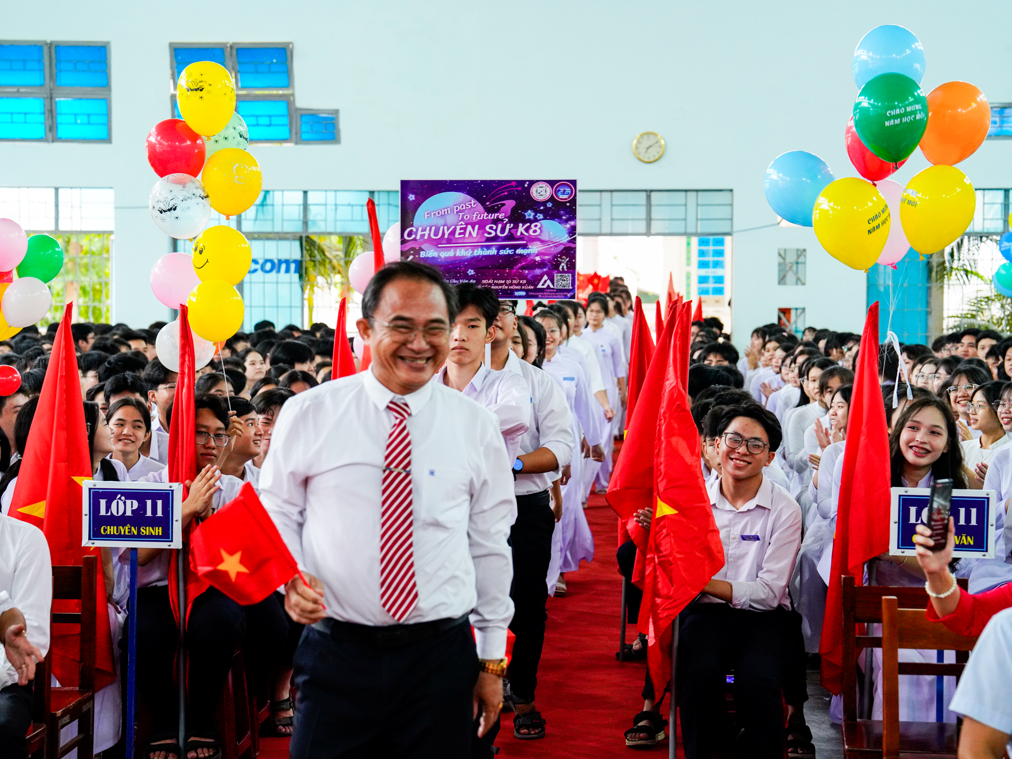Chương trình Lễ khai giảng bắt đầu hoạt động đón học sinh đầu cấp - Lớp 10. Năm học 2024 - 2025 nhà trường tuyển sinh 259 học sinh gồm các lớp chuyên Toán, Vật lí, Hóa học, Sinh học, Tiếng Anh, Ngữ Văn, Tin học và năm đầu tiên nhà trường tuyển sinh lớp chuyên Lịch sử.